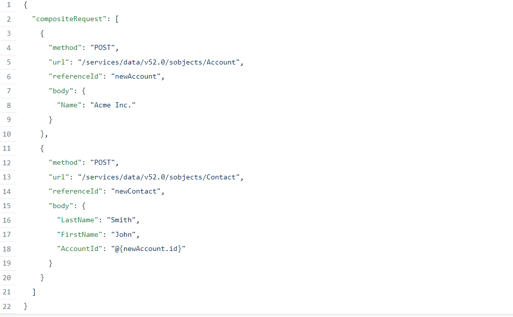 To access the composite resource, you must submit a POST request in the API version. An array of subrequests, each including the method, URL, referenced, and body (if applicable) of a separate REST API request, should be contained in the request body. Here’s an example of a straightforward composite request that establishes a contact and an account: