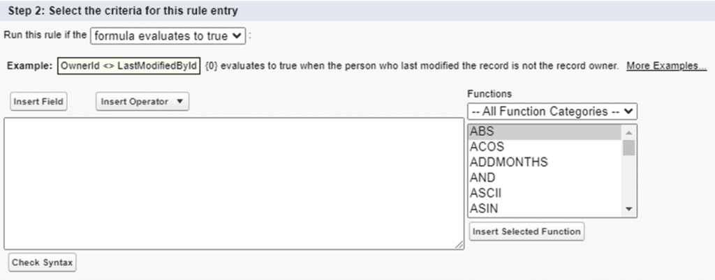 - The formula returns true: If a custom formula is needed, we can enter it.