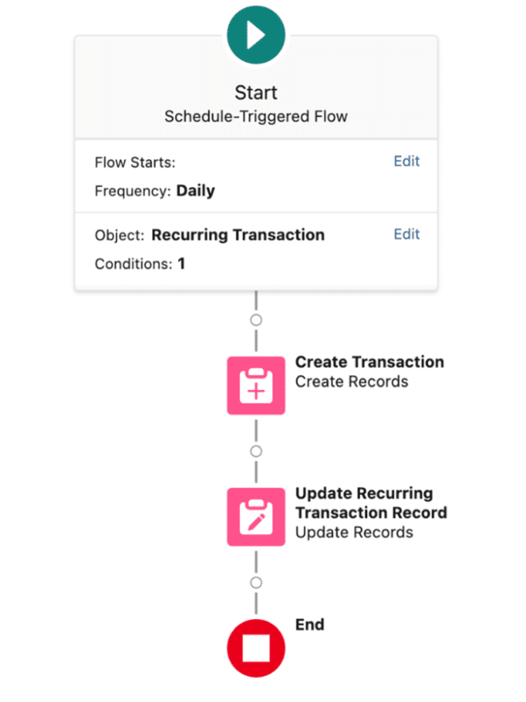 Use this flow type to run automated tasks. Autolaunched flows can be triggered by platform events, record changes, schedule modifications, other flows (sub-flows), process builders, Apex classes, and predefined schedules.
